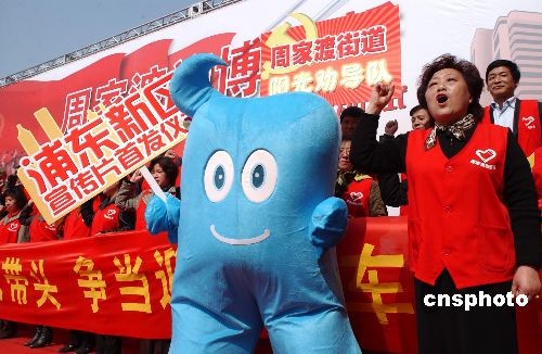 3月26日,上海世博會倒計時四百天在即,緊鄰世博會浦東園區的周家渡社區舉行“迎博宣誓”主題活動。包括外籍人士在內的千余上海市民齊呼“世界文明的盛會,我們大家的世博”等迎世博口號,場面壯觀。中新社發 張亨偉 攝