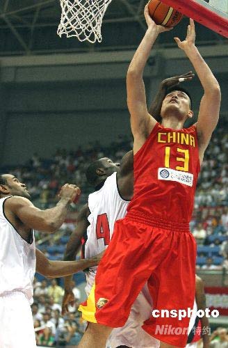 7月19日下午,中國男籃在杭州舉行的2008斯坦科維奇洲際杯籃球賽的比賽中迎戰北京奧運會同組對手安哥拉隊,姚明繼續替補出場砍下16分,但是中國隊外線啞火失誤過多以71比72負于對手。中新社發 任晨鳴 攝