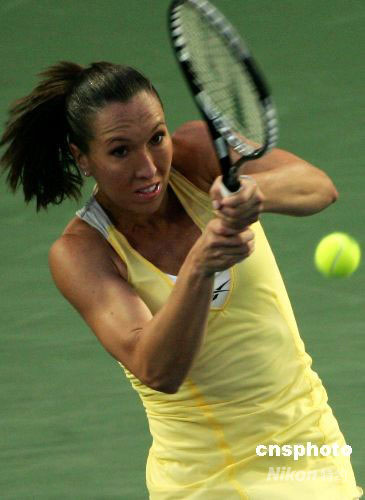 9月27日,2008年中國網球公開賽開始女單半決賽爭奪。頭號種子塞爾維亞美女揚科維奇以6-4、2-6、6-4的比分戰勝俄羅斯紅粉5號種子茲沃娜列娃,率先晉級決賽。中新社發 富田 攝