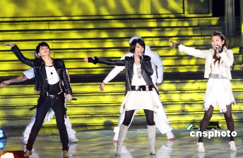 11月28日晚,臺灣知名組合S.H.E,韓國歌手安七炫放歌重慶市南川區,為當日開幕的首屆渝南黔北地區(南川)區域合作經貿洽談會助興。中新社發 郭晉嘉 攝