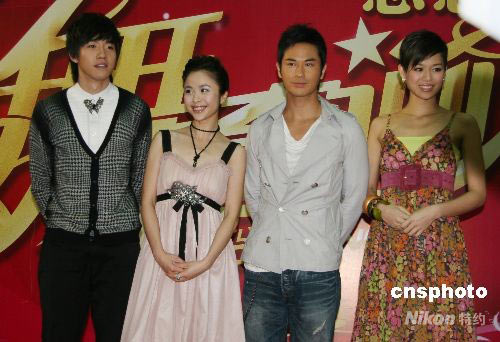4月14日下午,由湖南衛(wèi)視聯(lián)合香港TVB傾情打造的明星舞蹈競(jìng)技類節(jié)目——《舞動(dòng)奇跡》第二季在長(zhǎng)沙盛裝啟航。圖為俞灝明、楊若兮、鄭嘉穎、胡杏兒(從左至右)在亮相儀式上登場(chǎng)。中新社發(fā) 鄧霞 攝