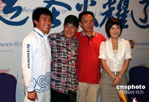 北京奧運(yùn)火炬將于7月17日在沈陽傳遞,“小品王”趙本山(左二)將在沈陽擔(dān)任北京奧運(yùn)火炬手。圖為趙本山出席火炬手見面會(huì)。中新社發(fā) 周兆軍 攝