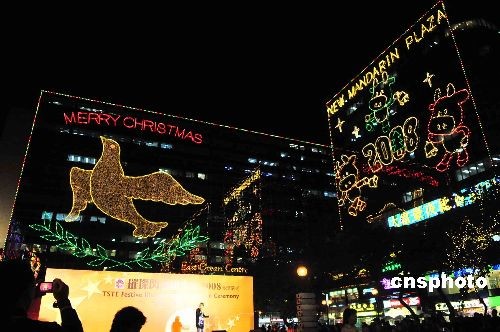十一月十二日,香港尖東舉行圣誕燈飾亮燈儀式。著名歌星古巨基主持亮燈儀式。各大商場冀在金融危機中力保市民消費意欲。中新社發 譚達明 攝