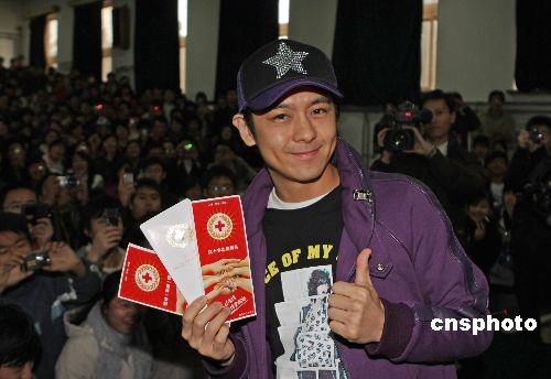 2月26日下午,“博愛在齊魯 走進青島”群星公益活動先后在青島科技大學和四方區老年人康復中心舉行。著名藝人林志穎和阿朵來到青島科技大學參加發送微塵卡,宣傳紅十字精神同學見面會,與到場數簽名大學生互動交流。中新社發 李東升 攝