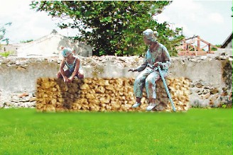 澎湖縣政府將在潘安邦舊居豎立外婆塑像,營造外婆的澎湖灣意象,圖為外婆與潘安邦坐在矮墻上的塑像模擬圖。