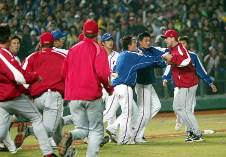 據(jù)臺灣媒體報道,這場在臺中舉行的大戰(zhàn)中,也出現(xiàn)比賽之外的不必要插曲。中國臺北隊球員力阻加拿大隊追平分,情緒自然激昂,卻沒想到球員額外的情緒發(fā)泄惹惱了加拿大球員,造成雙方球員跑入場中推擠理論,連球迷也紛紛丟擲雜物進(jìn)場,爆發(fā)八搶三奧運(yùn)棒球資格賽開賽以來最大沖突。