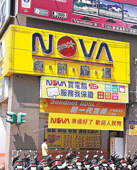 據臺灣“蘋果日報”報道,NOVA協理林恩祈昨表示,計算機3C商品是大陸觀光客來臺的采購重點,因在臺購買的計算機不需進行系統變更,且價格也較大陸便宜,估計若七月開放在島內兌換人民幣,可望帶動業績成長兩成以上。