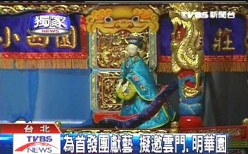 報道說,節目包括大家熟知的明華園,還有云門舞集,其它還包括朱宗慶的打擊樂團以及小西園掌中戲等等,目前都在征詢檔期。