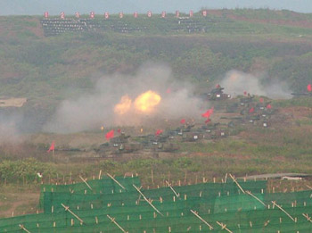 在“漢光演習”中,戰車進入岸際掩體,進行反登陸作戰 資料圖