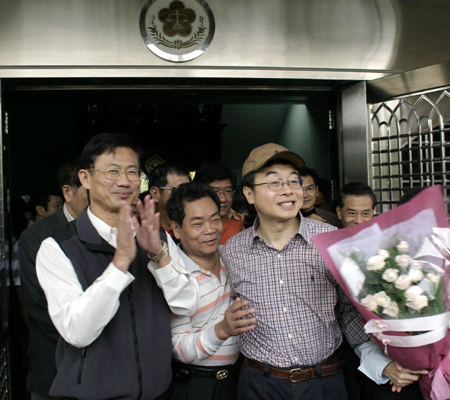 中新網11月20日電 據“中央社”報道,素有“揭弊英雄”之稱的國民黨“立委”邱毅今天上午減刑出獄,受到支持者熱情歡迎。當他完成各項手續后走出監獄大門時,民眾獻花致意,并高喊邱毅加油。邱毅吃了一口民眾帶來的豬腳面線,以表示去除霉氣。他感謝民眾七個月來的關心,隨后搭乘高鐵返回臺北。