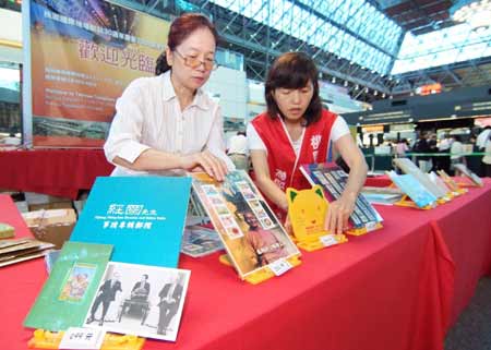 慶祝大陸觀光首發團來臺,臺灣郵政公司四日在桃園機場發行紀念郵票,票面包括馬英九、蔣經國等人的肖像。