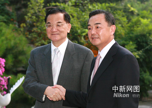 中新網(wǎng)8月5日電 中共中央臺辦主任王毅五日在北京釣魚臺國賓館養(yǎng)源齋會見應邀來京觀禮奧運會開幕式的中國國民黨榮譽主席連戰(zhàn)夫婦一行。