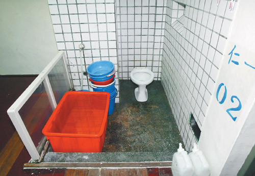 房舍中浴室兼廁所,陳水扁只能蹲著洗澡。