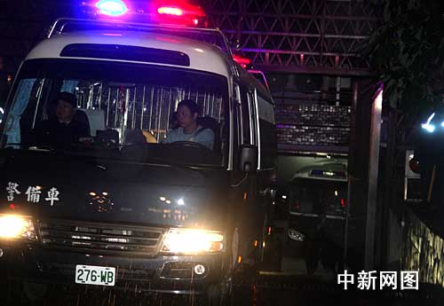 臺北地方法院從12月29日下午2時起召開陳水扁羈押庭,經過長達12多小時的庭訊、評議后,合議庭審判長蔡守訓30日2時25分裁定將陳水扁羈押,但不禁見。圖為今天(30日)凌晨3時30分,臺北地方法院的警備車載著陳水扁開出臺北地方法院,前往臺北看守所。(圖文/中新社記者 陳立宇)