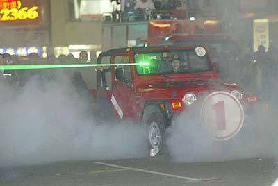 李昌鈺博士赴臺南市金華路槍擊現場,進行雷射彈道比對及兇手開槍位置等現場勘查,過程中以最新雷射儀器測試彈道射出情形,現場并施放人造煙霧,施放煙霧的主要目的,是為了使光束較容易標定。