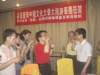 赴福建考“理財規劃師”的臺灣考生,昨天考完后于“謝師宴”上向主考官員敬酒答謝。(圖:臺灣《聯合報》)