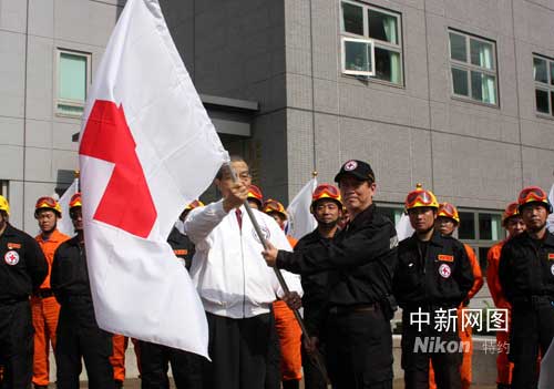 搜救隊今天上午八點三十分由市長郝龍斌及臺灣紅十字組織會長陳長文授旗,下午啟程。至于搜救隊將至哪一個地方救援,要等到了成都后,由當(dāng)?shù)氐木仍鞴軉挝环峙桑丫汝牅?zhǔn)備約七天份的干糧及飲水。