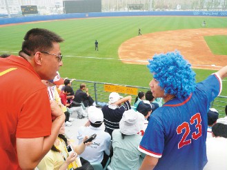 另據(jù)《聯(lián)合報》報道,昨天的北京五棵松棒球場也讓中華臺北隊享受到完全的主場優(yōu)勢。由三百名成員組成的大陸拉拉隊坐在一壘看臺后方,與三壘后方的數(shù)百名臺灣球迷遙遙相望。