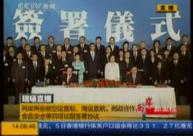 陳云林在上午的兩會領導人會談中指出,上述四項議題的解決,將使兩岸同胞渴望了30年之久的兩岸直接通航、通郵變為現實,為兩岸人員往來和經濟合作開辟便捷的路徑,從而增進兩岸人民福祉,帶動兩岸關系發展進入新的里程。