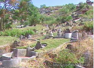 據(jù)臺(tái)灣東森新聞報(bào)道,臺(tái)北縣觀音山區(qū)公墓數(shù)以千計(jì)的往生者在這里安息,墓碑上頭的碑文記載著他們的身份以及來(lái)自何方,這橫書的兩個(gè)字,就是往生者的祖籍。