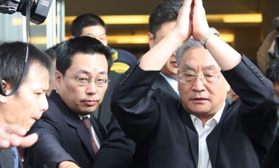 海協(xié)會(huì)副會(huì)長張銘清22日上午離開臺(tái)灣前雙手合十。