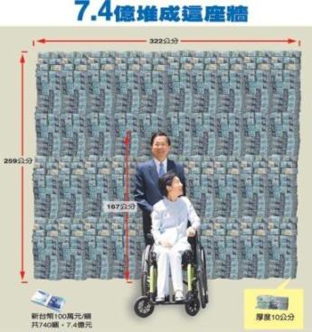 中新網12月2日電 臺灣《蘋果日報》1日刊文說,臺灣島內“紅衫軍”倒扁時,扁家存放在元大的現鈔達7.4億元(新臺幣,下同)。以千元大鈔相疊,有22層樓高。按目前所知的計算,扁家的來源不明金錢高達20億。此外,還傳出扁用“空軍一號”載錢出境。怎樣?我們“臺灣之子”酷吧!