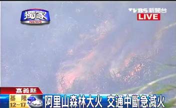 中新網1月12日電 據臺灣TVBS 報道,嘉義阿里山79公里處附近,今天上午發生火燒山。