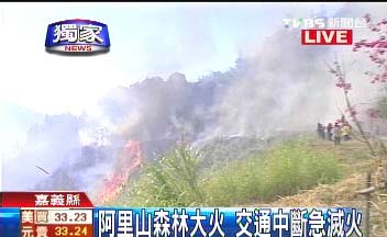 嘉義林區管理處大埔事業區228林班地,也就是在阿里山公路69公里處的邊坡草生林地,今天凌晨1時左右突然起火燃燒,火舌濃煙沖天。