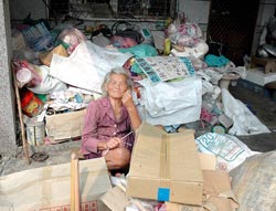 中新網3月19日電 據臺灣《中國時報》報道,屏東潮州一位八十歲老婦人,四年前丈夫罹病過世,她搬到小兒子家同住,但怕狗的她卻以屋內有狗為由,堅持不進家門,自己則利用紙箱、尼龍袋就在門前騎樓隔了一個小空間當作棲身處,不管天冷、天熱始終不離開,鄰居路過時都不禁投以好奇的眼光。