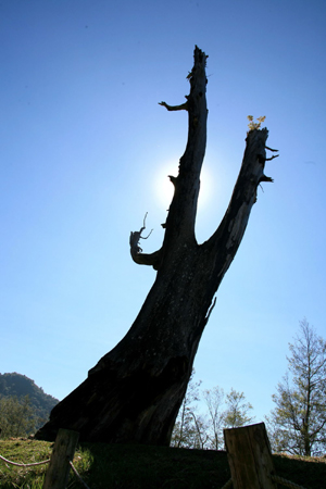 臺灣省南投縣最近天氣特殊,平地早上有霧、下午有靄,位于高海拔的信義鄉塔塔加夫妻樹一帶,則可見到少見的“日暈”現象,吸引游客拍照留念。“中央社”圖 曾立 攝