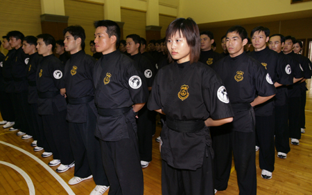 臺(tái)灣當(dāng)局“國安局”特種勤務(wù)中心二十一日舉行“大選”候選人安全維護(hù)專精訓(xùn)練結(jié)訓(xùn)暨編成典禮。維安人員將分成兩組,保護(hù)藍(lán)綠正副候選人!爸醒肷纭眻D 張皓安 攝