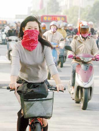 沙塵暴三日侵襲臺灣,各地懸浮微粒濃度明顯增加,北部地區空氣質量達到不良情形,懸浮微粒濃度以嘉義樸子和臺南安南飆高超過每立方米三百五十微克為最高。為“抵抗”沙塵暴,外出上班的民眾用頭巾包住口、鼻。臺灣《中國時報》圖 劉宗龍 攝