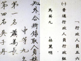 此次展出不僅有馬英九等人的榜單,還有1933年的超級(jí)古老榜單。這些榜單已有數(shù)十年歷史,在那個(gè)電腦不普及、甚至沒(méi)有電腦的年代,都是手寫,頗具古意。