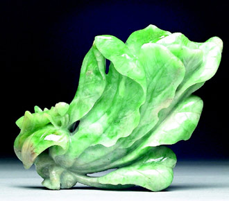 每年為故宮博物院吸引無數游客上門的“翠玉白菜”,其實并非獨一無二,光是臺北故宮就有三件“翠玉白菜”,但其中“翠玉小白菜”已有六、七年未展出,另一件“翠玉白菜花插”從未曝光過,由于故宮擬將現有依“編年”展覽的方式改為按“材質”分類展出,在調整展覽之際,翠玉白菜將要搬新家。