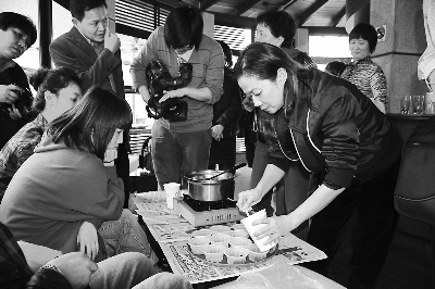 嗯,心里多少有點底了!按照“汆燙鍋享用步驟”,等鍋底燒開后,我將取來的“藥用蔬菜”“汆燙10至20秒”,再蘸上“特調藥草醬汁”,便開始一一品嘗。果然風味獨特!光是這些“樹葉”,就有酸、甜、苦、辣的差別。自然也有牛肉、羊肉、雞肉……吃飽喝足了!“植物養生汆燙鍋”不愧為美味佳肴,正如身旁的食客們所感嘆的那樣,既體驗了藥草原味,又享受了養生保健,還令人難以忘懷。