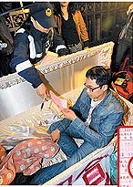 中新網(wǎng)11月16日電 據(jù)臺灣《蘋果日報》報道,日前吃牛糞抗議美國牛肉進(jìn)口的臺大社會學(xué)研究所博士班學(xué)生朱政騏,前晚開始在“立法院”大門口前躺棺絕食抗議美牛進(jìn)口,被警方以違反“未依規(guī)定在道路堆放雜物,妨礙通行”為由開罰。