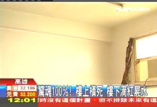據(jù)臺灣TVBS電視臺報道,高雄縣一名女子這幾天發(fā)現(xiàn)墻角天花板流出暗紅色、有臭味的水。報警后,警方到公寓3樓開門,才發(fā)現(xiàn)在房間里有一具發(fā)黑浮腫的男尸倒臥床上,尸水滲出棉被流到地板再滲進(jìn)樓下房間,驚悚情景猶如恐怖電影情節(jié)。