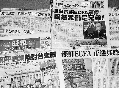 今天下午出版的《聯合晚報》在頭版頭條以《溫家寶談ECFA讓利:因為我們是兄弟》為題,圖文并茂報道了全國人大閉幕和溫家寶總理的記者會。《聯合報》特派記者汪莉絹因為在記者會上向溫總理提出了有關兩岸的問題,溫家寶總理對此進行了詳細解答,為此引發了島內媒體的廣泛報道和熱烈討論。《聯合晚報》還在第二版幾乎用了整版,進行相關報道。