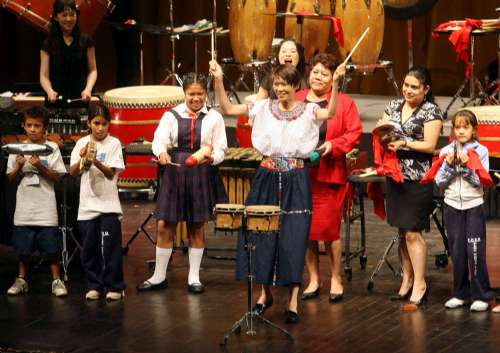 連秀3場打擊樂的周美青并未上臺,隨行媒體記者則起哄要馬英九表演,但馬英九仍不為所動,只坐在臺下欣賞。