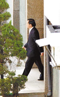 臺北地方法院審理機要費案1日傳前“總統府”會計長馮瑞麟與陳水扁對質,陳水扁未戴手銬準備搭囚車出庭。圖片來源:臺灣《中國時報》