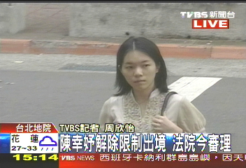 中新網8月3日電 據臺灣TVBS報道,陳水扁家族弊案世紀大審,日前陳水扁女兒陳幸妤被依偽證罪起訴,遭到限制出境。法院3日針對限制出境部分開庭審理,下午陳幸妤獨自搭乘出租車抵達臺北地方法院,面對詢問都不發一語,能否解除限境備受矚目。