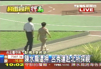 用餐后,在7點半再量一次血壓脈搏,一切正常;上午10點,呂秀蓮前往探望,北所也時時密切監(jiān)控扁的情緒,避免發(fā)生意外。