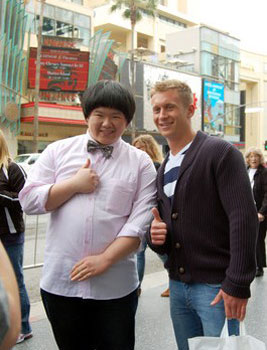中新網4月23日電 據“中央社”報道,臺“小胖”林育群23日前往洛杉磯好萊塢星光大道朝圣,因為網絡上的高點擊率與脫口秀節目的訪問,小胖一路上頻頻被路人認出,還有老外call out,當場電話連線。