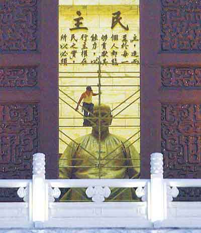 中新網12月27日電 據臺灣《聯(lián)合報》報道,臺當局“教育部”擬在民主紀念館(原中正紀念堂)蔣介石坐像前加裝鋼架,形似讓蔣介石“坐牢”,蔣家第三代、“立委”蔣孝嚴聞訊痛批“簡直荒唐到了極點,將會引起極大的民怨,對民進黨的選舉將是更大的敗筆。”