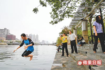 中新網3月30日電 為兌現選舉前的承諾, 42歲臺灣男子蔡柏祥昨天中午縱身跳入高雄市愛河。