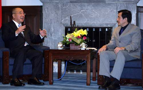 馬英九詢問包機直航與大陸觀光客客來臺的問題,吳伯雄說,一切就等海基會董事長江丙坤去大陸再說,原則已經確定,中共總書記胡錦濤說要用最迅速、最積極的辦好這些事情。