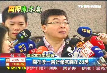 中新網12月30日電 據臺灣TVBS報道,陳水扁二度遭收押,國民黨“立委”邱毅說陳水扁遭收押的孝一舍28房,跟他上次被關的房舍是同一間,兩人意外成了前后任室友,邱毅諷刺地說這就是現世報。