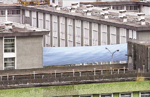 中午時,看守所突然在扁放風的球場邊,拉起一大塊帆布,避免讓扁再被媒體拍到。對此,看守所副所長李大竹受訪時表示,這是基于維安的考慮,并評估其它放風處是否也要比照辦理。