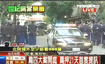 車隊不到15分鐘即抵達臺北地院,鐵門隨即降下,不讓陳水扁的模樣曝光,據指出,陳水扁今天沒有抹發油,頂著一頭翹發、戴著手銬出庭。他的兩位委任律師鄭文龍和石宜琳,之前預告要在庭上做出激烈手段,因此警方不敢大意,部署霹靂小組在法庭內戒備。