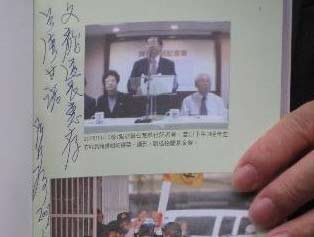 據(jù)“今日新聞”報(bào)道,鄭文龍律見完陳水扁,從公文包拿出《臺(tái)灣的十字架》,翻開第一頁,上頭寫著“文龍道長(zhǎng)惠存,臺(tái)灣甘諾!毕骂^再簽上“陳水扁”三個(gè)字,注明時(shí)間是2009年1月20日土所。